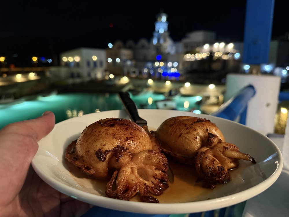 Uitgebreid ontbijten deed ik bij Sweet memory café in Fry. Het ligt een beetje verscholen in de straatjes achter de haven, maar al snel zul je de stemmen horen van de dames die daar elke ochtend een koffie komen doen. Het is ook de enige plek op Kasos die al vroeg open is op dit eiland waar alles net even wat trager gaat. Als je van uitzicht houdt, dan kun je (iets later) terecht bij Zantana. Het ontbijt is daar iets eenvoudiger, maar niet minder lekker.