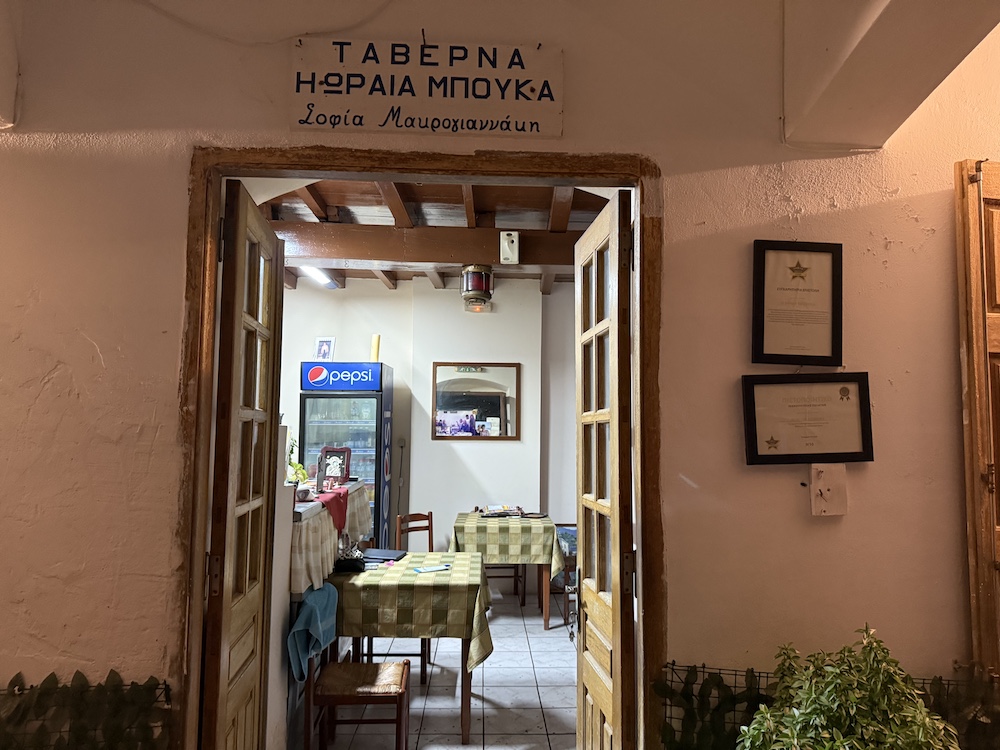 Hier kan ik heel kort over zijn omdat Kasos een eiland is waar je vooral niet ingewikkeld wilt doen: verblijf in de hoofdstad Fry (uitspraak “Frie” ). Zeker als je maar kort verblijft, wil je niet elke dag met de auto op pad en het leven speelt zich vooral af rondom de haven (Bouka). Ik verbleef op 3 minuten wandelen van Bouka bij Angelica’s Traditional Apartment. Traditioneel is het zeker en er is zelfs een kamer die je kunt bezoeken volledig ingericht als museum. De eigenaresse Maria vertelt je er met alle liefde over.